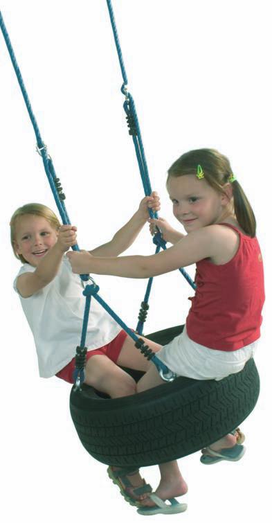 Damit lässt sich auf alle Seiten schaukeln. Genügend seitlichen Abstand vorsehen. Aus spritzgeformtem HDPE-Kunststoff mit witte-rungsbeständigen PH-Seilen. Ø Seil 12 mm, Ø Sitz 28 cm. Für Schaukelbalken bis 250 cm ab Boden. Oben mit Ring und Verstell-achterhaken.