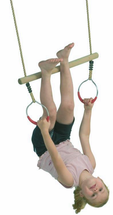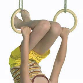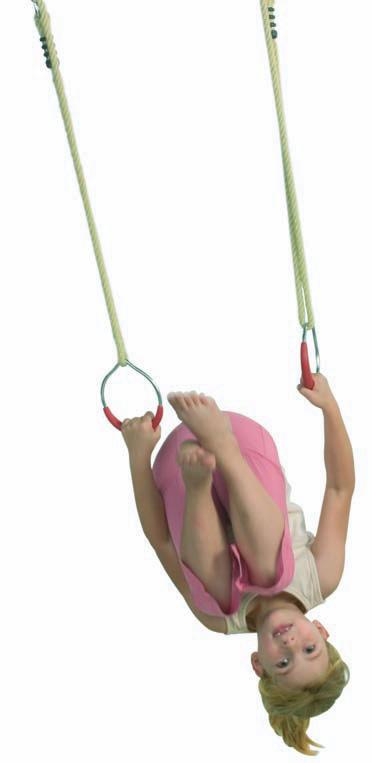Starke Turnringe, auch für Erwachsene. Me-tallringe innen Ø 12 cm, mit grifffreundli-chem Überzug. Für Schaukelbalken bis 250 cm ab Boden.