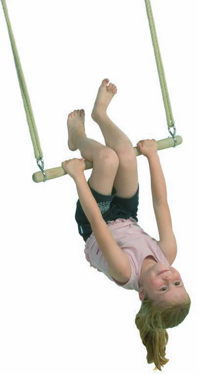 Dieses Trapez ist ergonomisch. Das heisst, dass sich das Trapez von aussen nach innen verjüngt. Genau dort, wo die Hände die Griffe halten, wird das Holz leicht dünner. Durch den geringeren Durchmesser bei den Händen kön-nen sich die Kinder besser halten. Geeignet für Schaukelbalken bis max. 255 cm ab Boden. Mit Verstellachten und Ringen zum Aufhängen. Nr. KB21130 Trapez aus Holz CHF 35.–